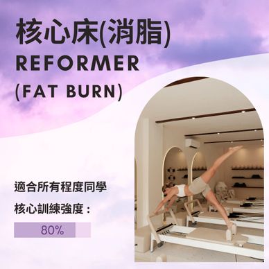 Fat Burn 課程專注於高強度的 Reformer 鍛鍊,旨在快速燃燒脂肪並提高心肺耐力。課堂中結合全身運動,包括多個高強度的肌肉訓練和有氧運動,以促進新陳代謝和減脂。學員將挑戰自己的體能,通過不同的動作組合加強肌肉和改善心肺功能。這堂課不僅有助於減重,還能提升學員的力量及耐力,達到健康的體重管理。