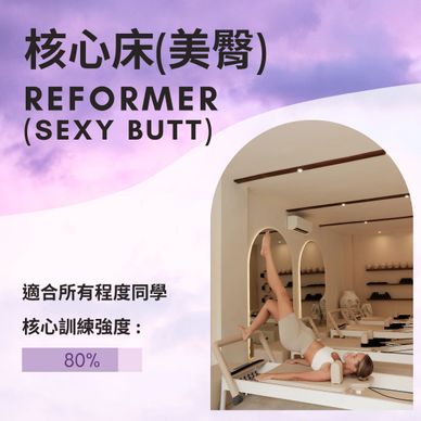 美臀課程針對臀部和腿部肌肉的塑造與強化,通過特定的 Reformer 鍛鍊來打造勻稱有型的下半身。課堂將專注於激活臀部肌肉群,並進行一系列針對性的訓練動作,以改善線條和增強力量。除了塑形之外,這堂課程還能提升下肢的穩定性,讓學員在追求美臀的同時,也兼顧功能性的強化與修身。