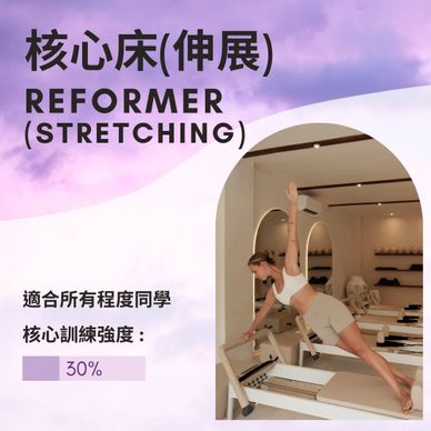 伸展課程專注於拉伸和靈活性訓練,旨在幫助學員減輕肌肉緊繃,改善身體的柔韌性和靈活性。課堂中使用 Reformer 器材進行各種拉伸動作,促進血液循環並提高關節活動範圍。這樣的訓練不僅能舒緩肌肉疲勞,還能增強運動表現,降低受傷風險。學員將在輕鬆愉快的氛圍中進行深度放鬆,達到身心的平衡。