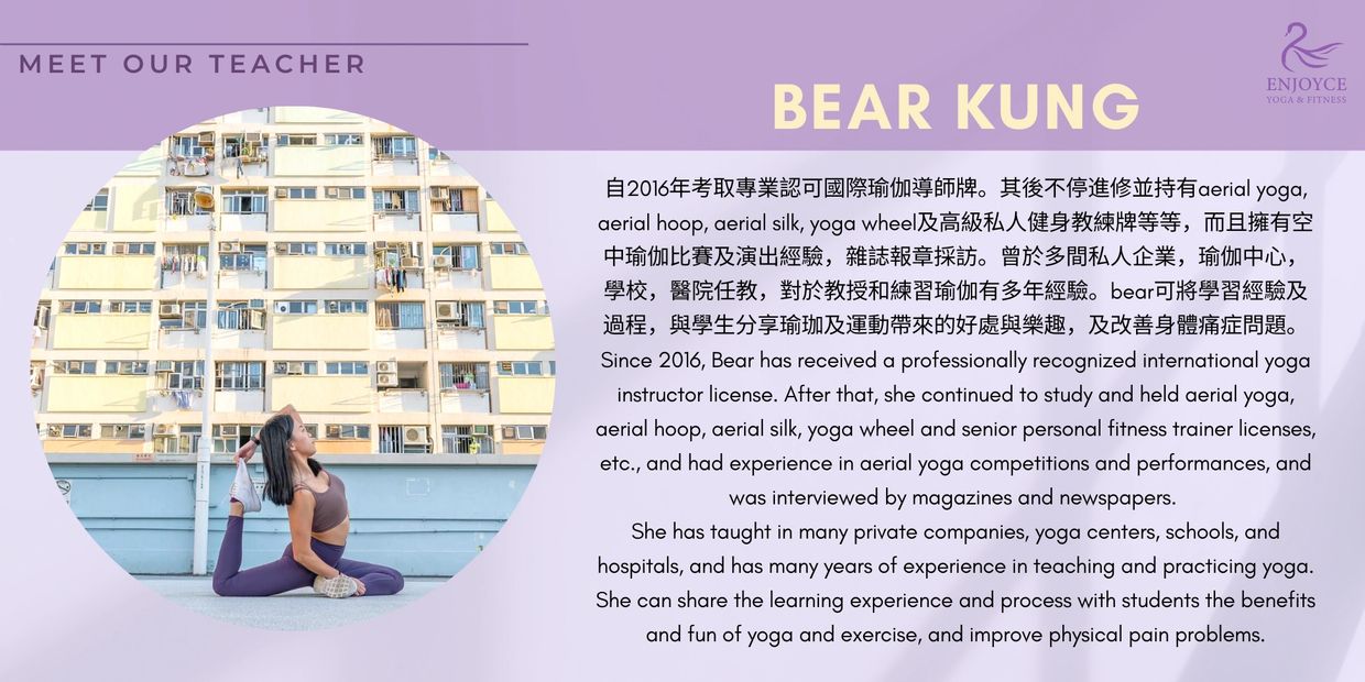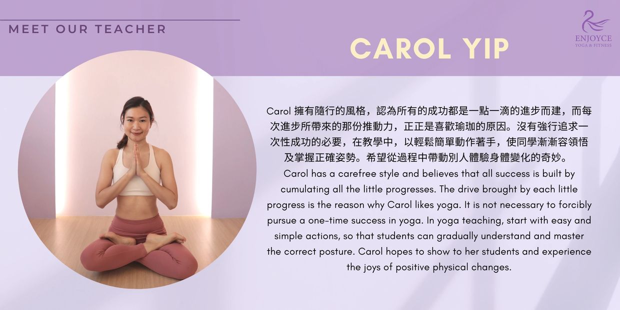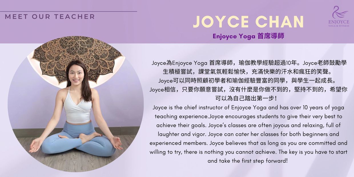 All instructors at Enjoyce are professionally trained and are passionate about yoga and fitness. After each lesson, our instructors are happy to share their experience with our members. These interactions help our members to gain a deeper understanding of yoga & fitness practices. Collectively, our instructors cover many teaching styles, they are very often fun and lighthearted, member-focused and dedicated to their arts. At Enjoyce, all members should be able to find a suitable instructor who resonates with their styles and preferences.