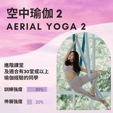 空中瑜伽二級課程建立在一級的基礎上,著重於更進階的體位法。學員將學習高級動作,例如倒立、翻轉及旋轉技術,還會融合流動瑜伽的元素,形成柔和的動作鏈。此課程也強調教學技巧,幫助學員指導其他學生完成各種動作。此外,加強學員的體能和手臂力量,以應對較高難度的練習,是二級課程的重要組成部分。